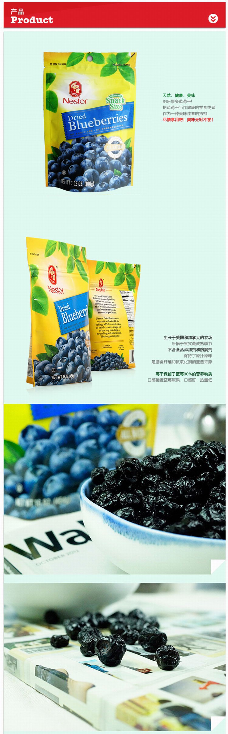 美国进口食品果干Nestor乐事多蓝莓干无添加100g包