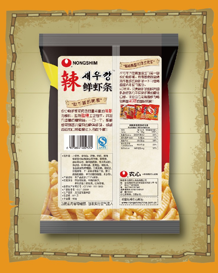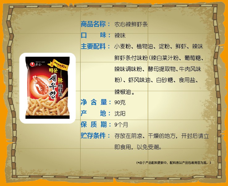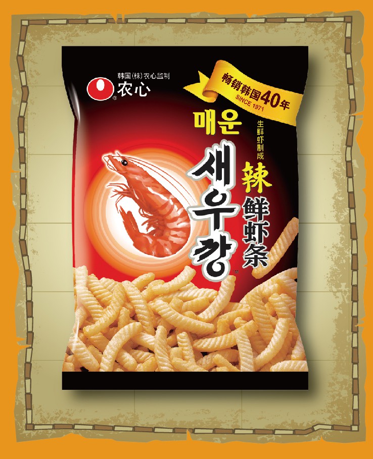 农心 辣鲜虾条 90g 畅销南韩40年 美味休闲小零食膨化食品虾片