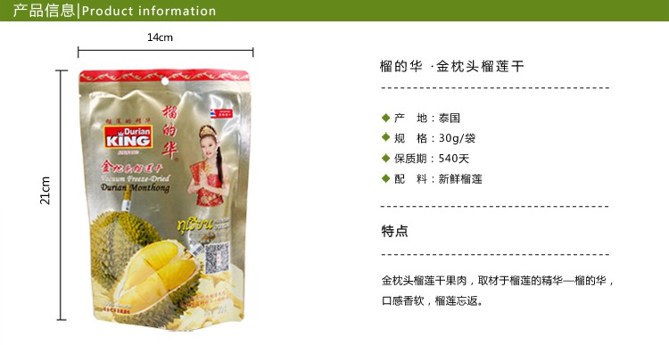 泰国进口榴莲干 行货 榴的华 榴莲干 金枕头榴莲干30g 进口零食