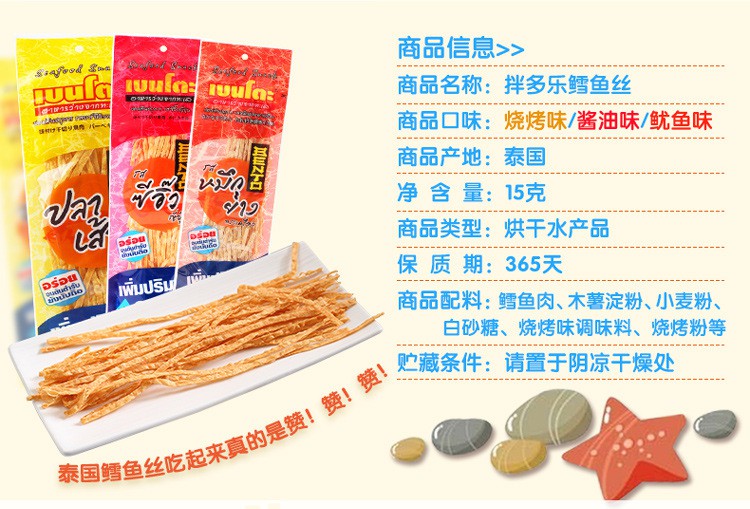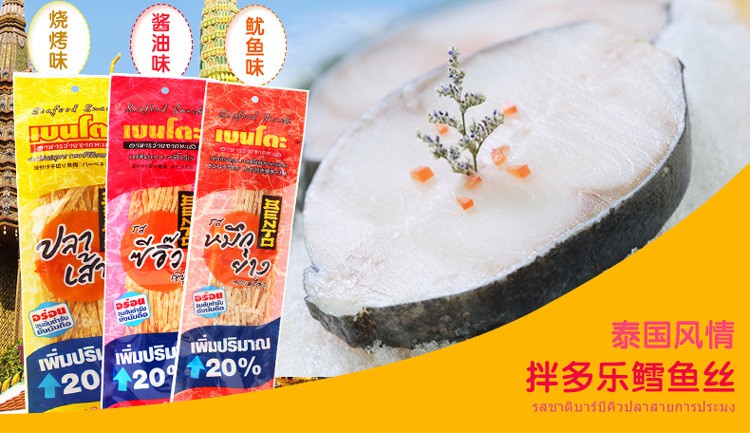 泰国进口零食 拌多乐bento鳕鱼丝烧烤/鱿鱼辣味15g即食海鲜