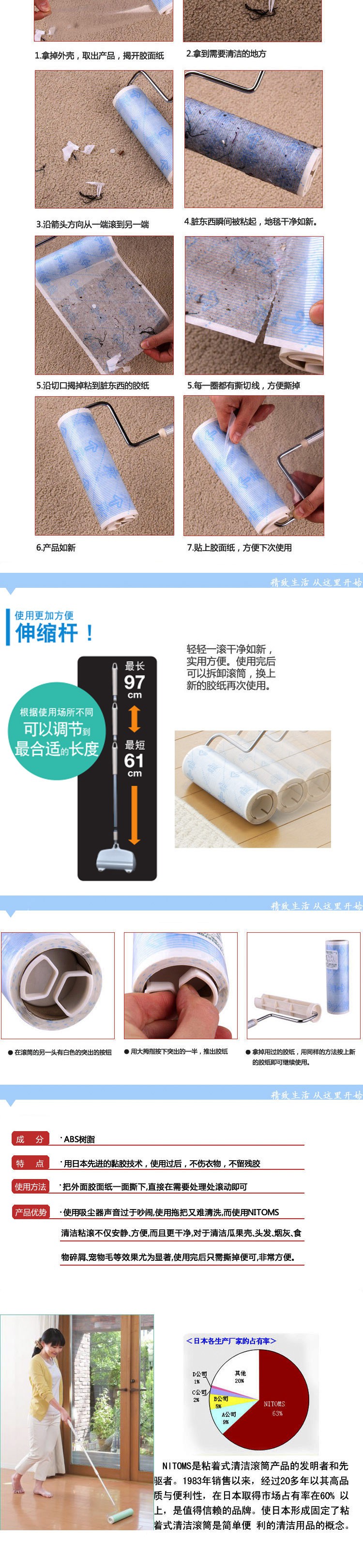 日本进口NITOMS粘滚加长粘毛除尘器粘尘拖把除尘滚筒可伸缩粘尘器