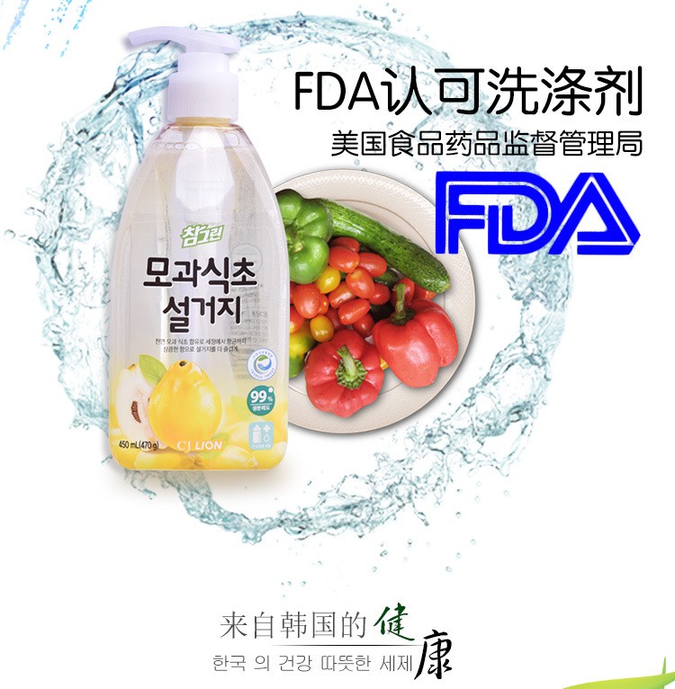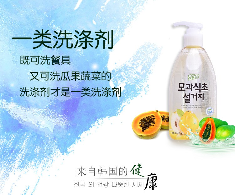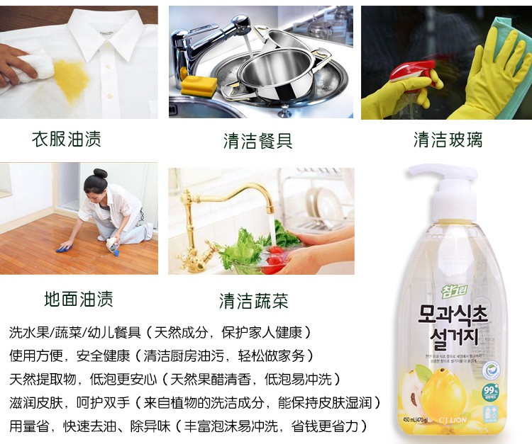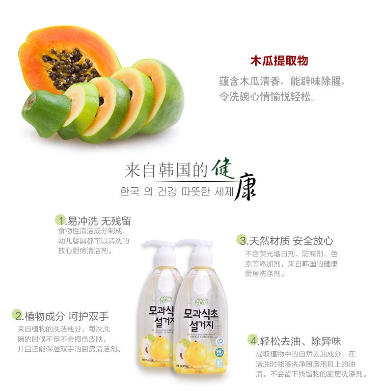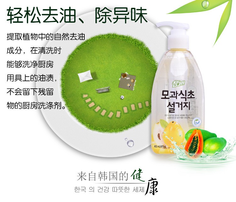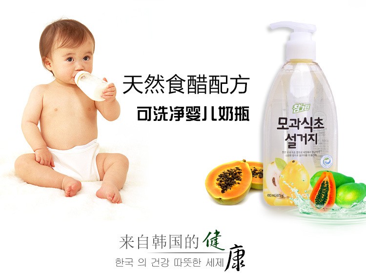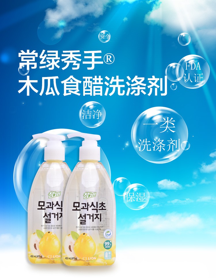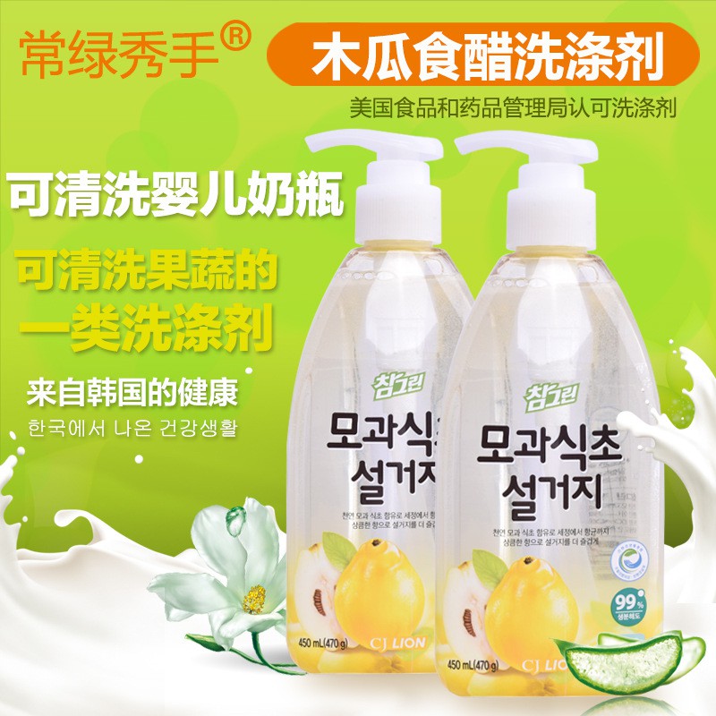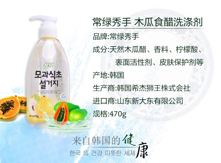 韩国进口 希杰狮王常绿秀手木瓜食醋洗涤剂 470g