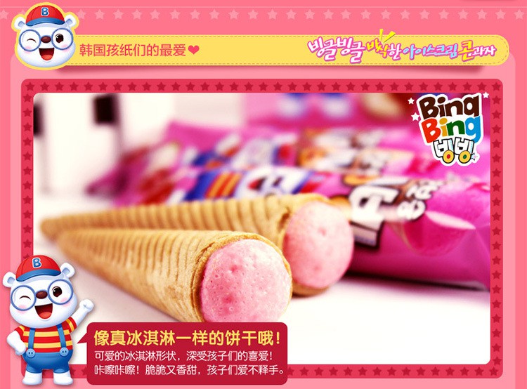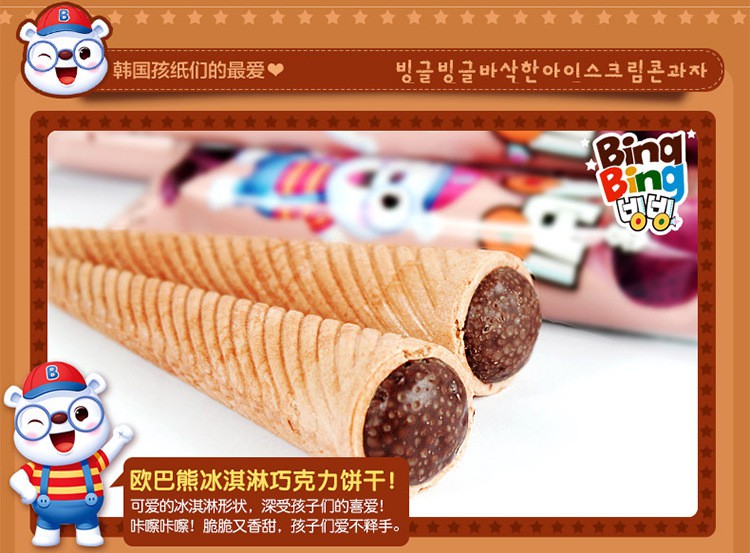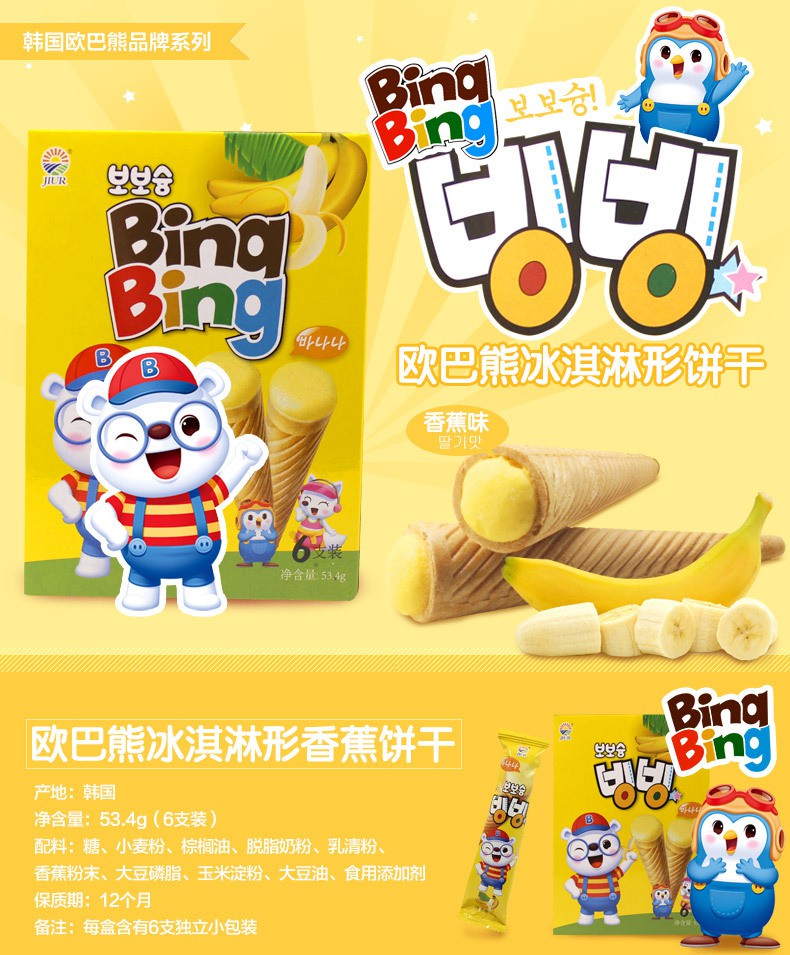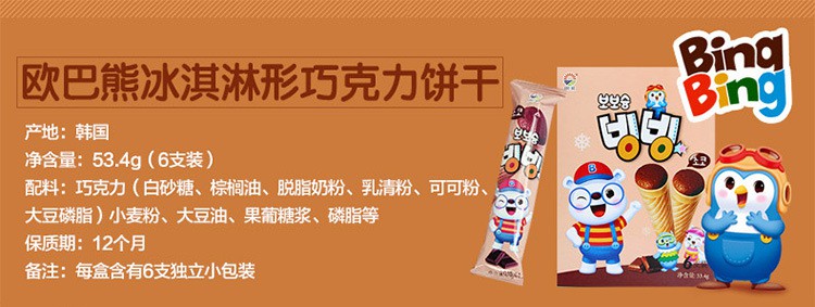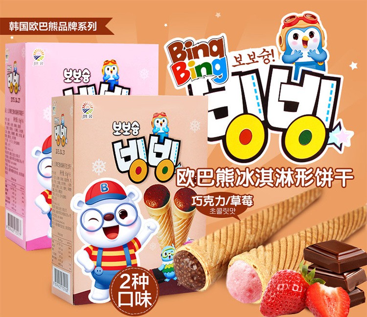 韩国进口食品 九日欧巴熊冰淇淋饼干 多味儿童零食53.4g
