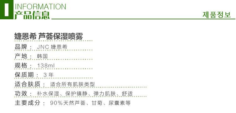 The JNC婕恩希 天然芦荟补水美白保湿爽肤水 韩国护肤品正品进口