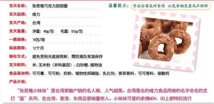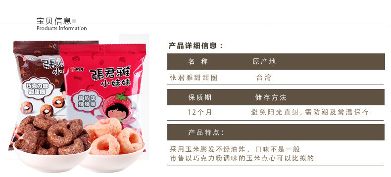 台湾进口零食 张君雅小妹妹 草莓味巧克力甜甜圈 45g 40g