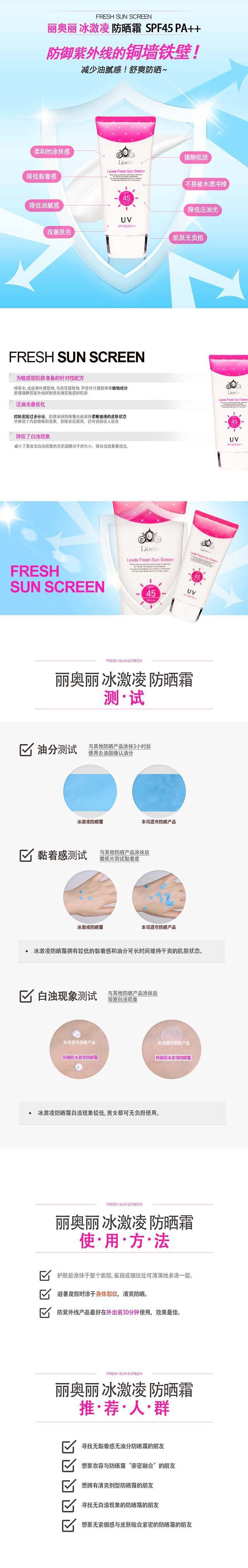 丽奥丽/lioele 韩国人气新品冰激凌防晒霜 PA++45防晒乳 正品